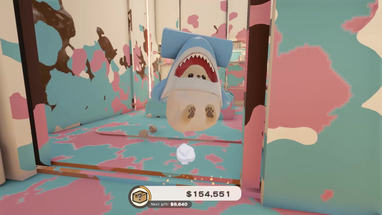It's a sort of sandbox game where you need to make your owner's house as messy as possible, and not just with mud. Juice, ketchup, and paint can add some colour, and you can even use household appliances to spread the muck.