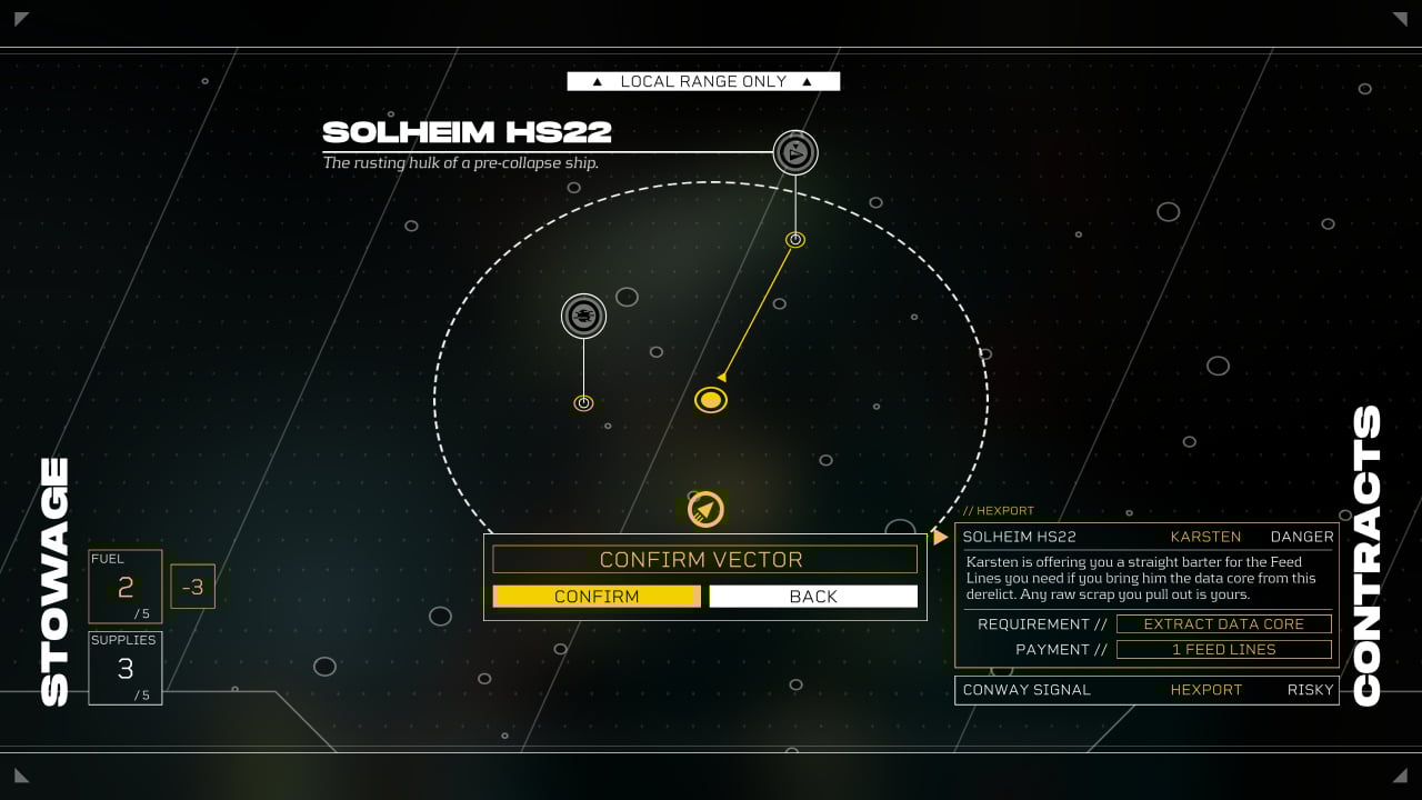 Contracts offer a new kind of focused, tactical gameplay to the Citizen Sleeper experience. Players will need to prepare carefully and choose the right approach for these multi-cycle high-risk/high-reward jobs – but they’ll also have to react and adapt to both the roll of the dice and the twists and turns of each task.
