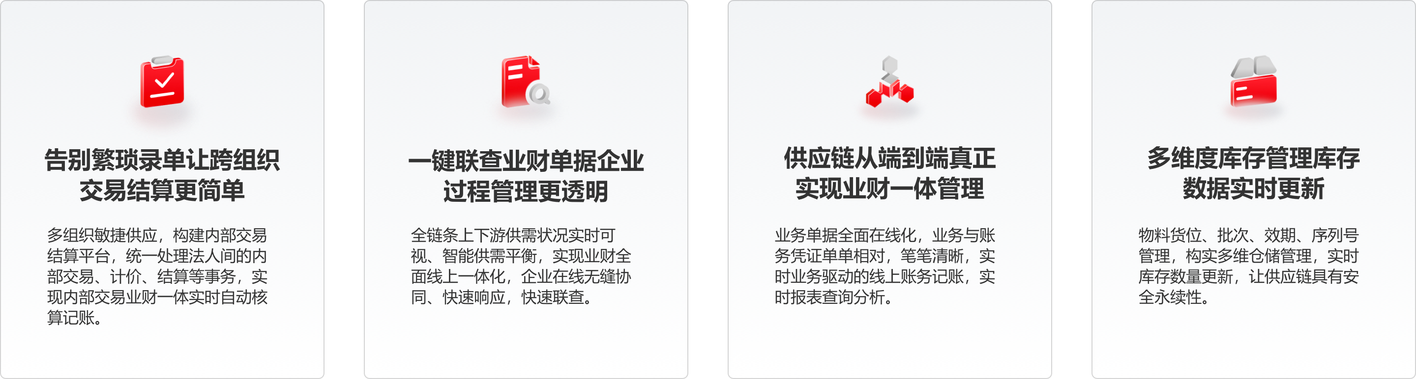 内部交易系统支持企业内跨会计主体的销售、采购、领料、完工入库、调拨等业务的内部交易业务处理。满足集采业务、跨组织销售业务的内部结算。