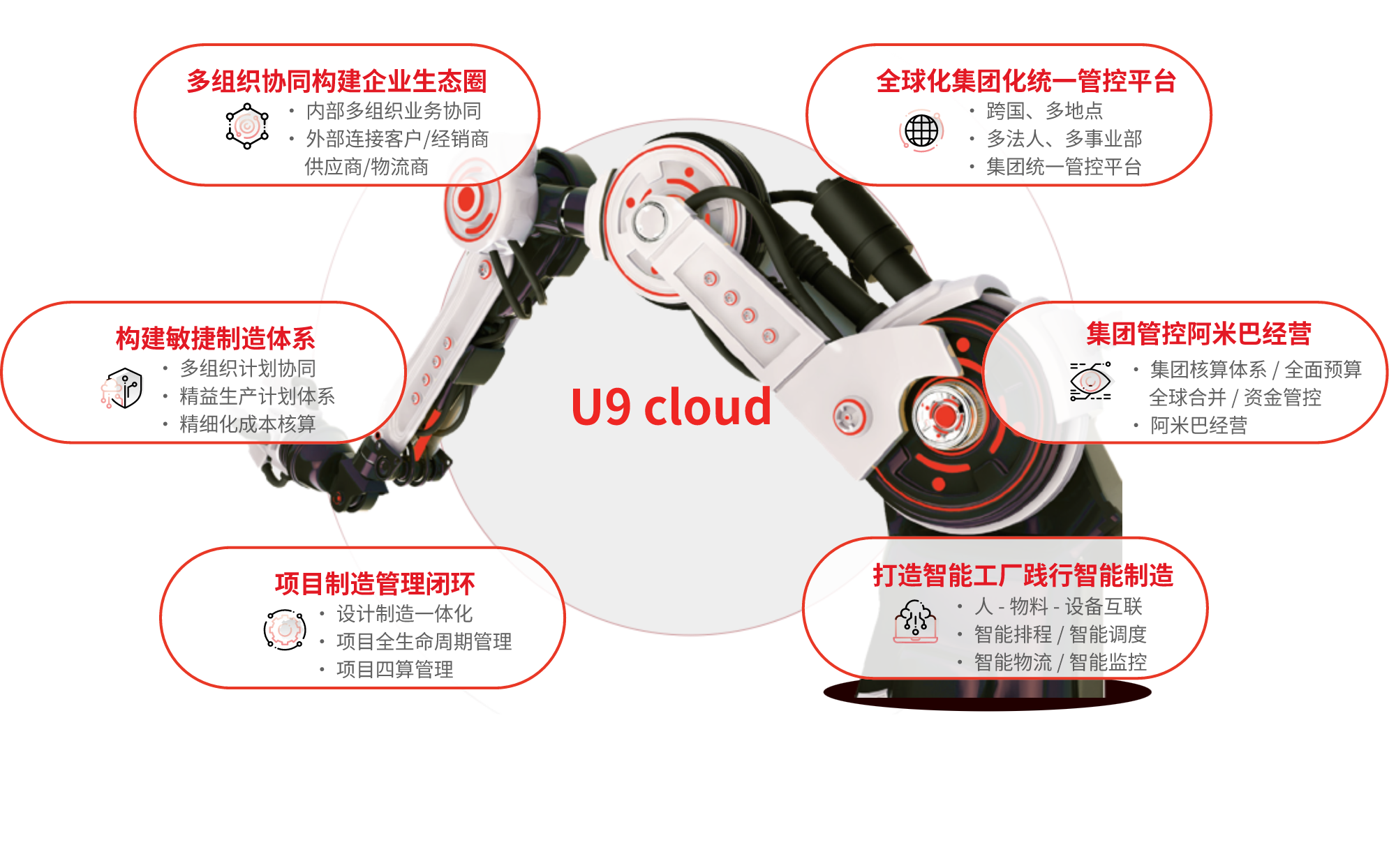 U9 cloud灵活的多组织架构、强大的功能、开放的平台很好地实现了我公司的定制化生产、柔性化制造、精细化管控等精益管理需求,构建了我公司的敏捷制造体系,极大提升了我公司的管理水平!